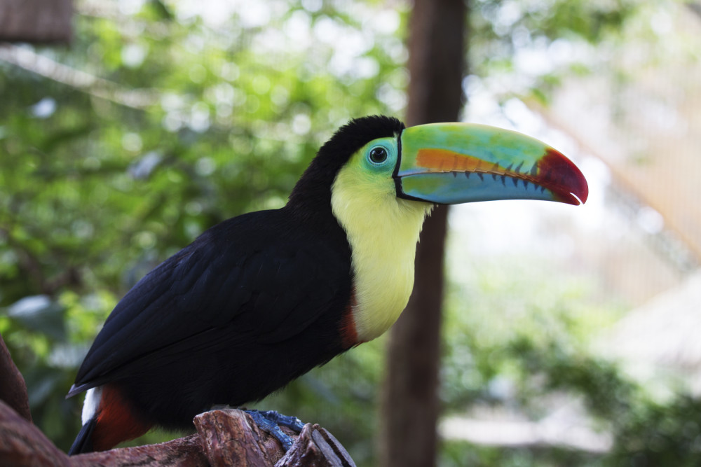 Parece que el pico curvo y multicolor del tucán pesa más que su cuerpo. Pero es liviano y resistente.